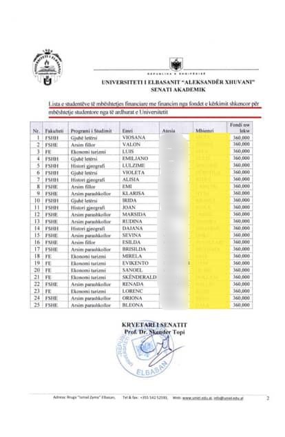 Përshëndetje JOQ! Dua të denoncoj një rast mungese transparence në Universitetin e Elbasanit "Aleksandër Xhuvani"! Sipas Vendimit nr. 10, datë 23.02.2024, të firmosur nga Prof. Dr. Skënder Topi, u miratua fondi prej 9,000,000 lekësh për mbështetje financiare të 25 studentëve për degët prioritare. Sot, më 21 tetor 2025, ka kaluar më shumë se një vit nga miratimi, por as unë (një nga studentët në listë) dhe as shumë të tjerë nuk kemi marrë asnjë pagesë. Deri tani, nuk është dhënë asnjë sqarim apo transparencë për arsyet pse fondet nuk janë shpërndarë ose KU KANË SHKUAR GJATË RRUGËS?! Ky është një rast serioz që kërkon hetim dhe verifikim të menjëhershëm nga institucionet përkatëse, pasi fondet publike të miratuara nuk duhet të mbeten pa u shpërndarë ose vjedhur. Sipas dokumenteve zyrtare të publikuara nga universiteti, fondet janë miratuar dhe është bërë shpërndarja për “25 studentë” përfitues. S’kanë marrë përgjigje konkrete, plus u kanë thënë se s’jeni fitues. Po, në fakt listën e gjeta vetë, se nuk na e kanë dhënë. Problemi është që lekët janë shpërndarë dhe nuk kanë shkuar aty ku duhet. Kur futesh në faqen e universitetit, e kanë hequr listën e bashkëngjitur. Po pra, listën (vendimin) e parë e gjeta në faqen e universitetit bashkë me emrat dhe kemi shkuar në rektorat dhe na thanë që s’jeni ju fitues, kur ndërkohë emrat tanë ishin aty. Dhe gjatë ditëve i kanë hequr emrat që kanë fituar. Kanë lënë vetëm faqen e parë.