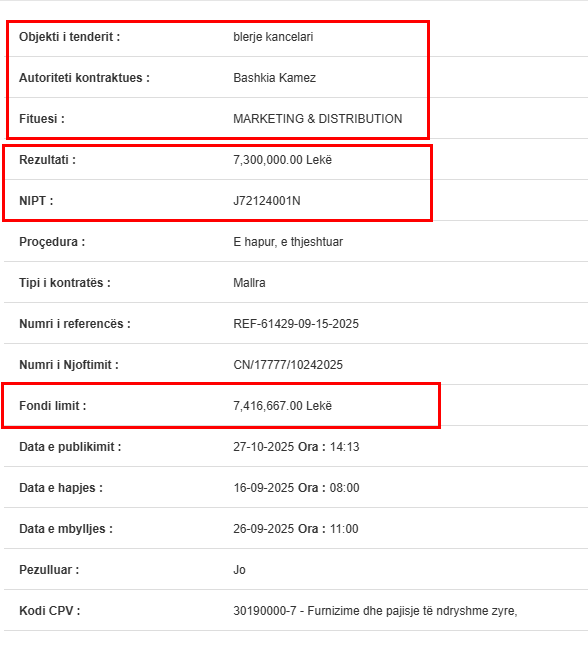 Kjo situatë përforcon bindjen se tenderat publikë në shumë bashki po kthehen në procedura të paracaktuara, ku gara është vetëm në letër dhe fituesit njihen paraprakisht. Në rastin e Kamzës, ku përdorimi i fondeve publike ka qenë shpesh objekt debati, ky tender për “kancelari” ngjan më shumë me një formular justifikimi për të mbuluar një vjedhje të qartë për të gjithë.