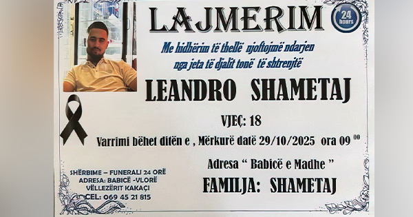 Një ngjarje e rëndë ka tronditur qytetin e Vlorës në orët e para të mëngjesit të sotëm, ku 17-vjeçari që shihni në foto, Leandro Shametaj, humbi jetën pas një aksidenti tragjik.
