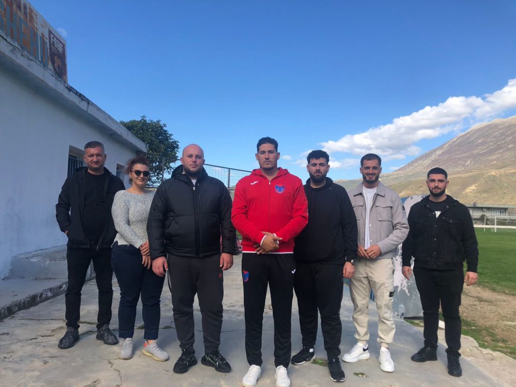 Në foto: Gabriel Guma, 26-vjeçar, i pozicionuar në qendër, që po sfidon monopolin socialist 18-vjeçar në Bashkinë e Tepelenës.