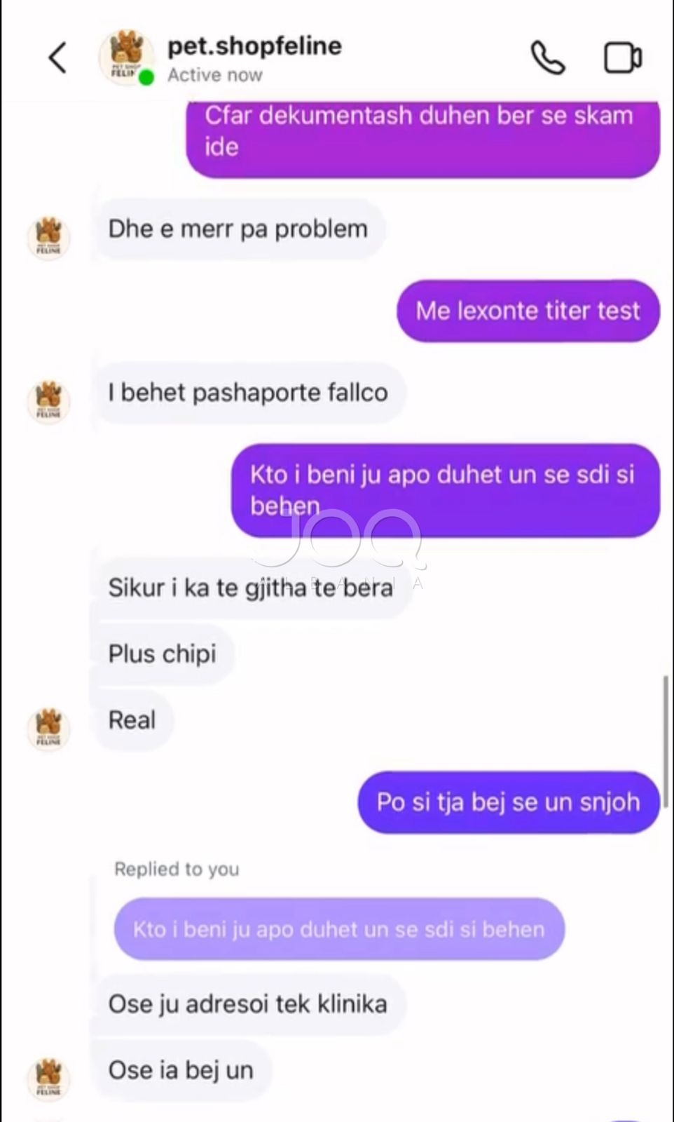 Qytetarja tregon se kur kërkoi kthimin e parave dhe marrjen e përgjegjësisë për dëmin e shkaktuar, shitësja, e identifikuar me emrin Jona, e bllokoi menjëherë dhe nuk pranoi të komunikonte më. Sipas denoncimit, dyqani nuk disponon as licencë, as NIPT, nuk jep fatura dhe dyshohet se operon prej kohësh në mënyrë të paligjshme, duke importuar kafshë të sëmura dhe të pa vaksinuara, ndërsa i pajis me dokumente të rreme për t’ua shitur klientëve si kafshë “të racës” dhe “me të gjitha vaksinat e kryera”.