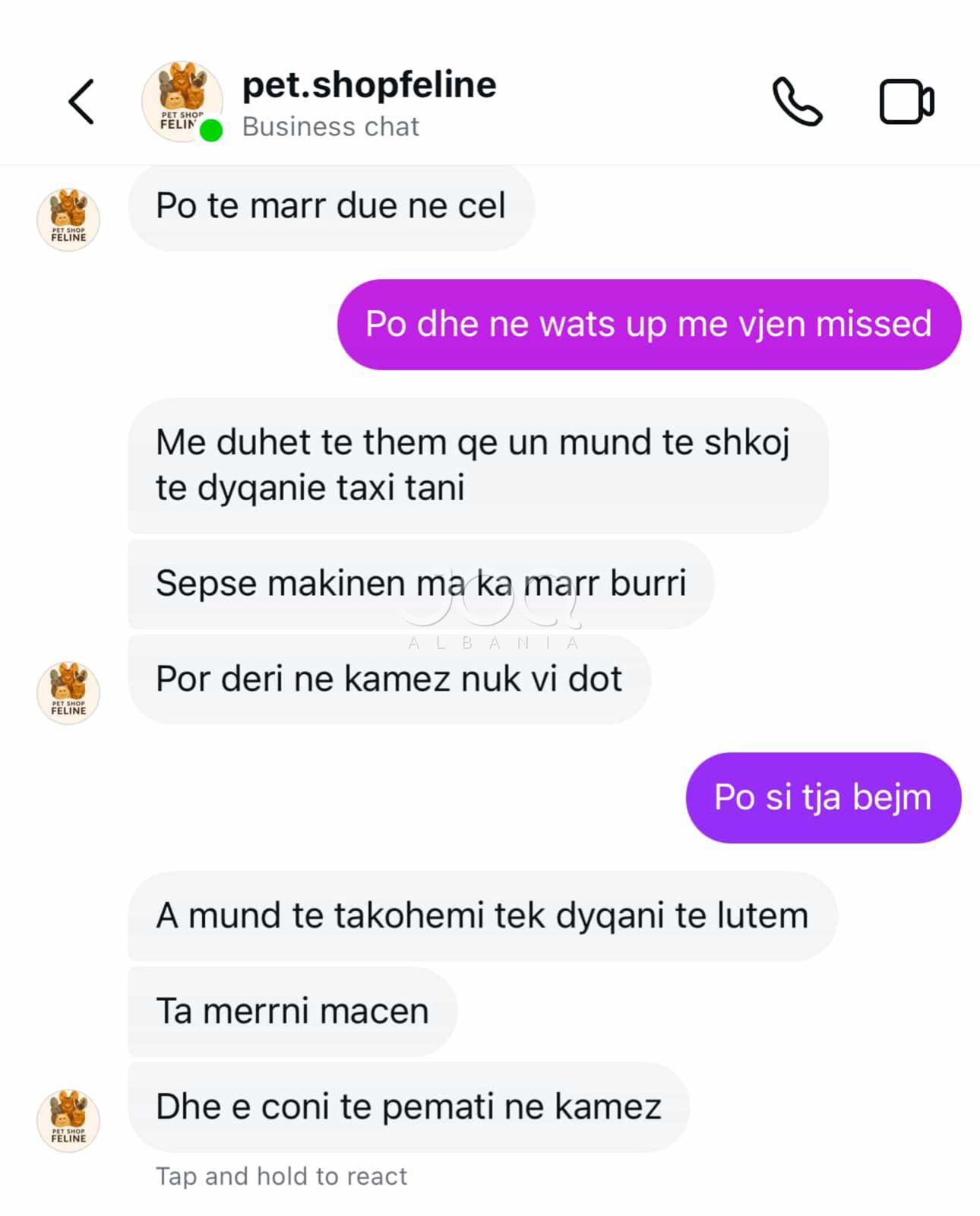 Sipas denoncimit, ajo ka pësuar pasoja të rënda financiare dhe ligjore kur ka mbërritur në shtetin Gjerman, macja që ajo bleu në shtator në një pet shop në zonën e Rrugës Hoxha Tasim iu shit fillimisht nën emrin “Maine Coon Albania”, ndërsa sot i njëjti biznes funksionon me emrin “Pet Shop Feline”, duke ngritur dyshime se ndryshimi i shpeshtë i emrit përdoret për të shmangur përgjegjësinë dhe për të humbur gjurmët pas çdo denoncimi.