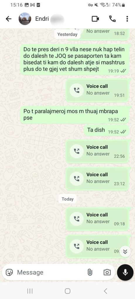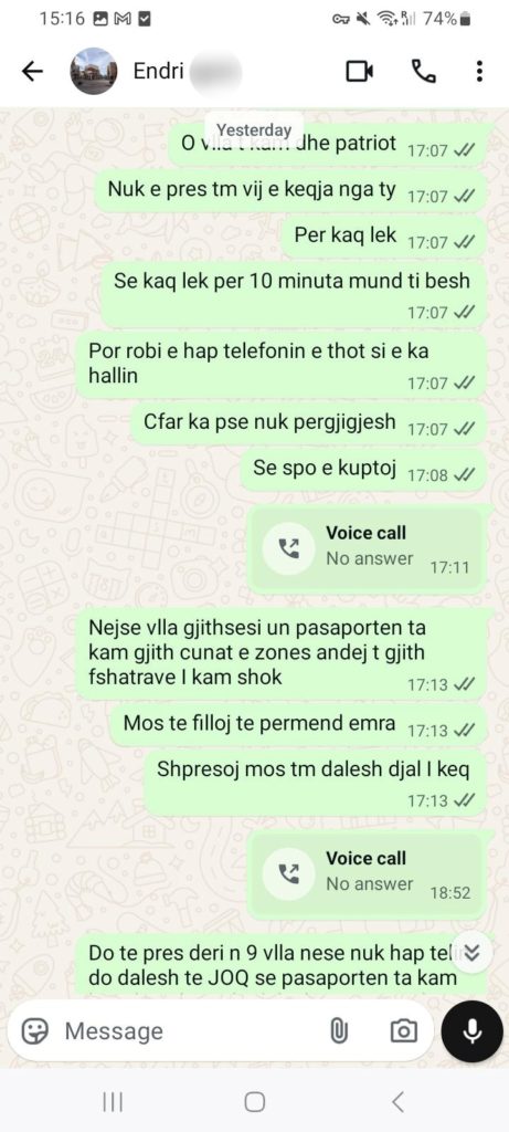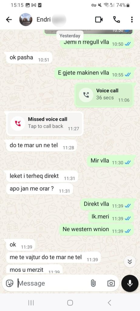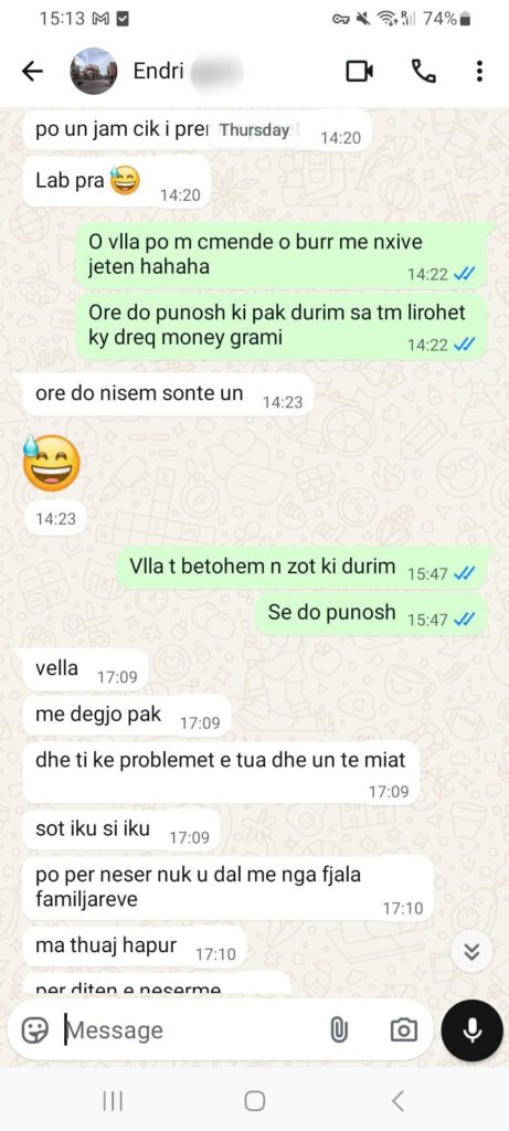 Përshëndetje, JOQ, dua të denoncoj një rast mashtrimi. Kam bërë një reklamë në faqet online ku kërkoheshin punëtorë për shoferë që transportojnë pjesë makinash nga Gjermania drejt Shqipërisë. Rasti në fjalë më ka kontaktuar në telefon dhe më tha se ishte i interesuar të punonte. Pas insistimit të tij të madh, më bindë që ishte serioz për të punuar dhe në mirëbesim i nisa 450 euro për shpenzimet e rrugës. Menjëherë pas tërheqjes së lekëve nuk mora më përgjigje nga personi në fjalë, i cili quhet Endri Gj. Unë ndodhem në Gjermani, ndërsa ky në Shqipëri. Për herë të fundit me të kam folur ditën e djeshme. Që nga momenti që tërhoqi lekët, nuk po më kthente më përgjigje. I bie në telefon vazhdimisht, por nuk përgjigjet.