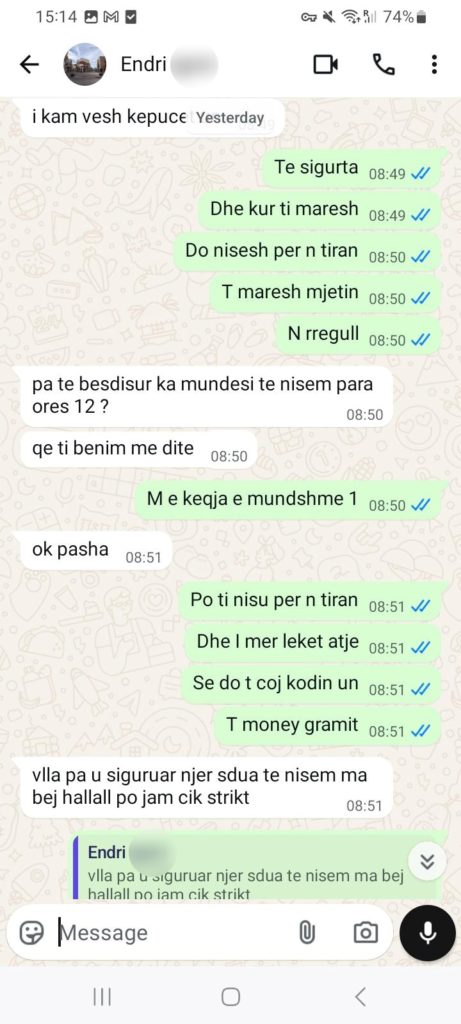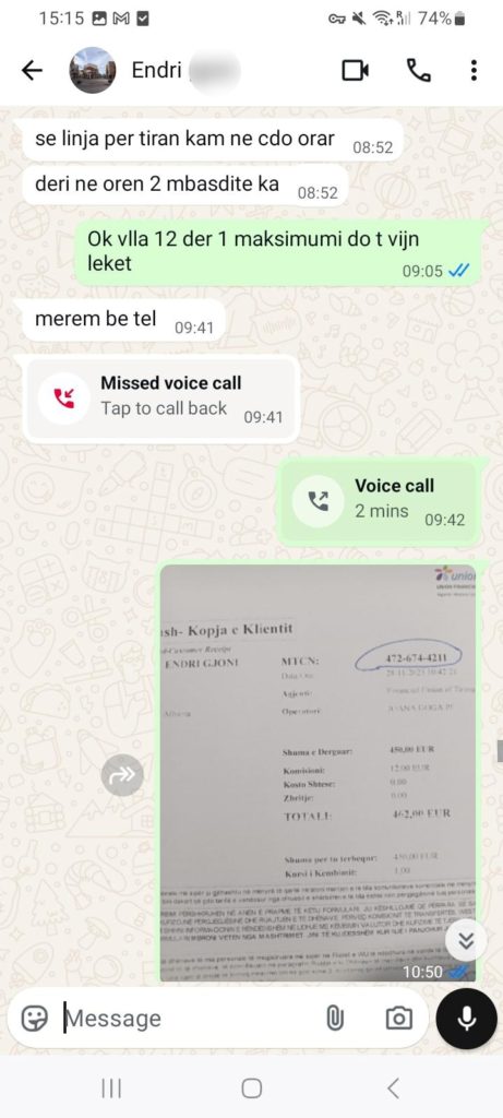Denoncuesi ka treguar se pas insistimit të personit në fjalë, i cili quhet Endri Gj., ai e ka besuar dhe ka bërë pagesën për shpenzimet e rrugës, por menjëherë pas tërheqjes së parave nuk ka marrë më asnjë përgjigje.
