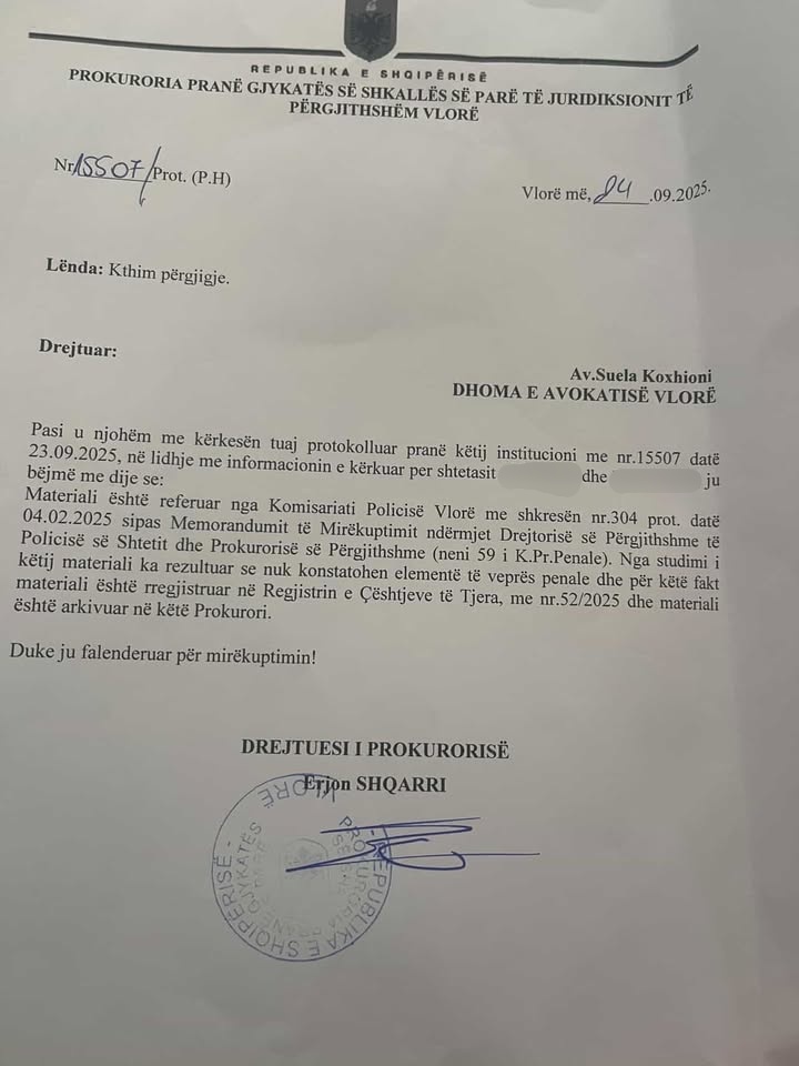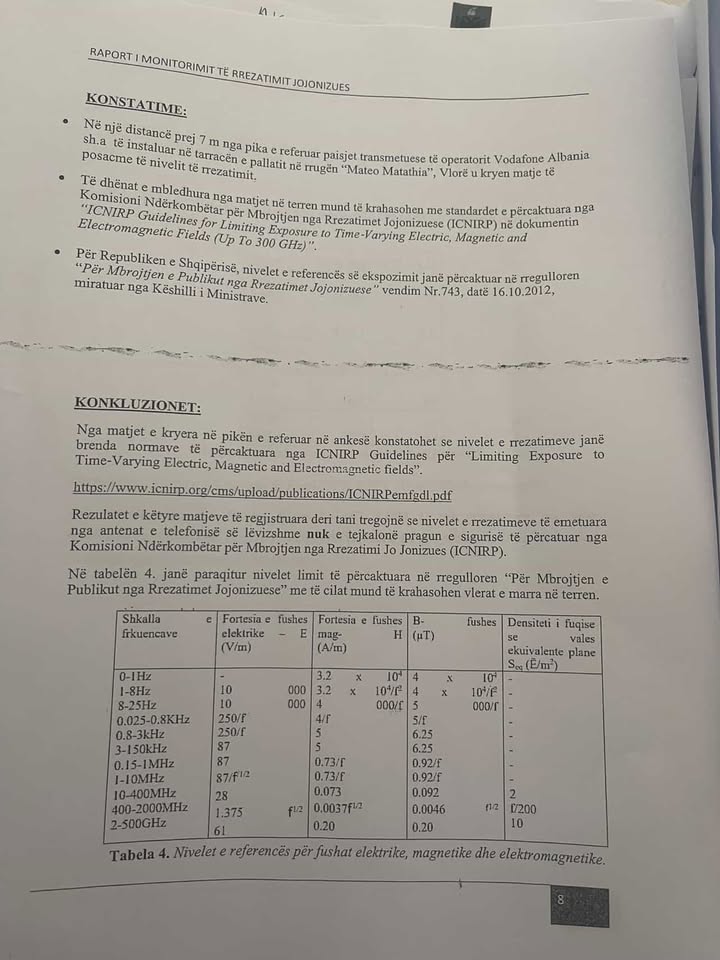 "Në një rast, të vendosjes së një antene jashtë çdo lloj standardi ligjor, në lagjen 1 Maji në Vlorë, mbi tarracën e një godine dykatëshe. Ngjitur me godina të tjera të cilat shërbejnë si banesa ku jetojnë familje. E kanë ngritur banorët si shqetësim të vazhdueshëm rrezatimin, zhurmën dhe shkeljen e çdo lloj standardi mbi rrezatimet. Nën protestave banorët vunë në lëvizje deputetë të zonës dhe bënë edhe kallëzim penal. Prokuroria e Vlorës e vendosi arkivimin e çështjes pa bërë asnjë akt ekspertimi a kishin të drejtë apo jo banorët. Ndërkohë grupi i AKEP erdhi dhe bëri matjet e rrezeve, distancën, edhe pse në prezencën tonë aparati i matjeve të rrezeve ulërinte, ata e nxorën brenda normës. Beteja ende vazhdon! Ky është AKEP dhe këto janë institucionet tona. Ndërkohë që mbesa e një banori i cili ka banesën ngjitur me objektin ku janë vendosur antenat vetëm 5 vjeç ka shkuar me gjendje të rëndë shëndetësore në spital, pa ndjenja, pa puls shqetësime kanë edhe banorë të tjerë. E kemi krijuar tashmë precedentin, kur vdesin njerëz reflektojmë”, shkruna qytetarja.