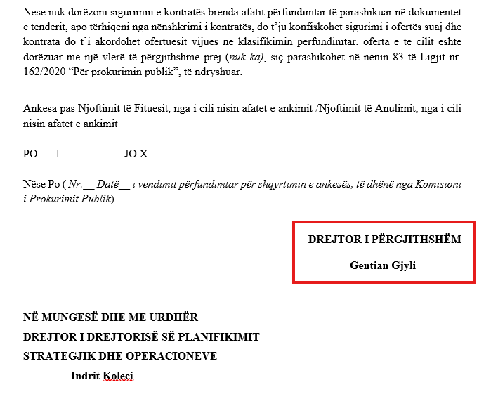 Autoriteti kontraktues: ARRSH, drejtuar nga Gentian Gjyli, aktualisht në arrest shtëpie