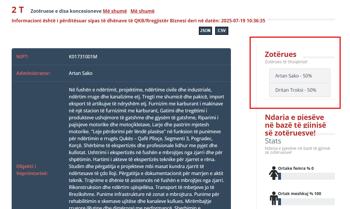 Fituesi: 2T, në pronësi të Artan Sakos dhe Dritan Troksit