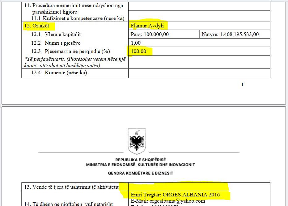 Flamur Avdyli, i njohur për hetimet ndaj tij dhe familjarëve të tjerë në operacionet e policisë së vitit 2018, figuron si aksioneri i vetëm i kompanisë. Pavarësisht akuzave të shumta të ngritura asokohe, kompania e tij ka vijuar aktivitetin pa masa kufizuese nga institucionet, sipas të dhënave të Qendrës Kombëtare të Biznesit.