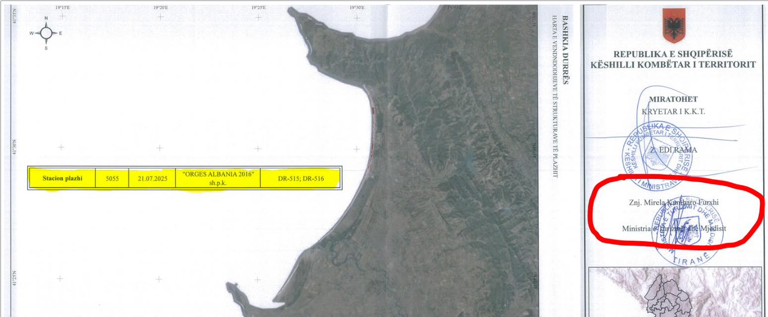Leja, me numër 5055 dhe firmosur në 21 korrik 2025, mban nënshkrimin e kryeministrit Edi Rama dhe ish-ministres së Turizmit dhe Mjedisit, Mirela Kumbaro. Burime pranë Vox News pohojnë se miratimi i lejes është bërë shumë më herët, ndërsa publikimi i saj zyrtar është vonuar, për shkak të reagimeve të mundshme që mund të shkaktonte.