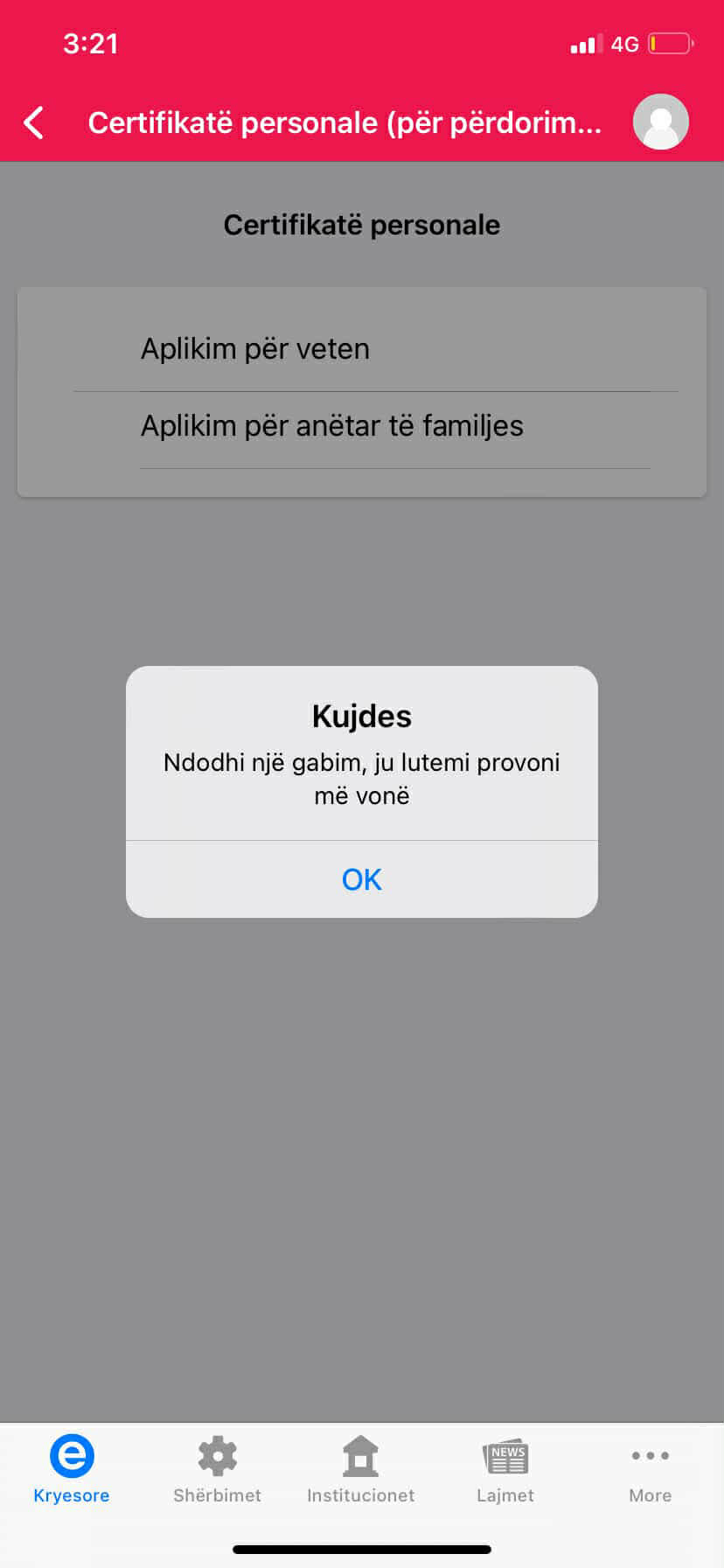"Pershendetje si jeni? Doja te beja nje ankes ne lidhje me aplikacionin E -albania te kryeministrit rama pasi ka dy dite qe eshte jashte funksionit mua me duhet nje certefikat dhe nuk mund ta terheq as ne gjendje civile as online. E pershendes shum kryeministrin tone kam dy dite qe e provoj dhe eshte i njejti problem