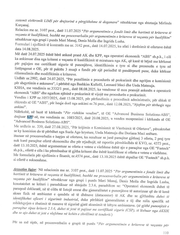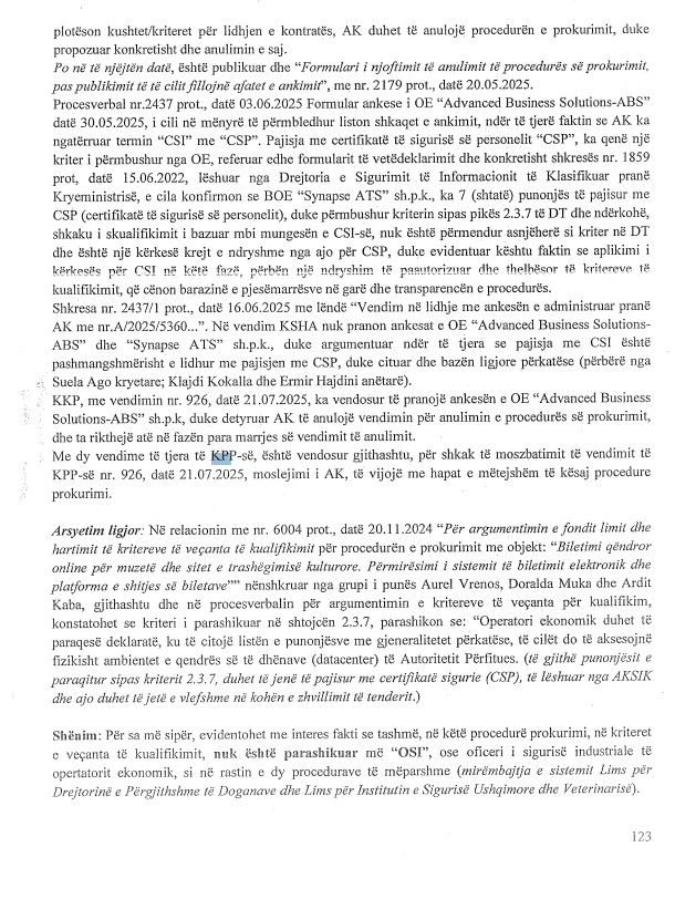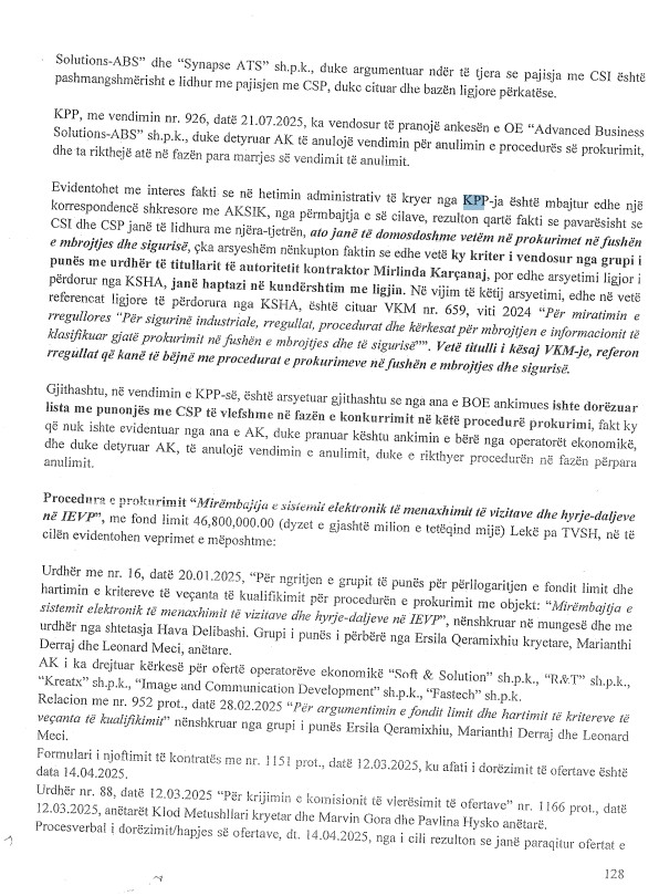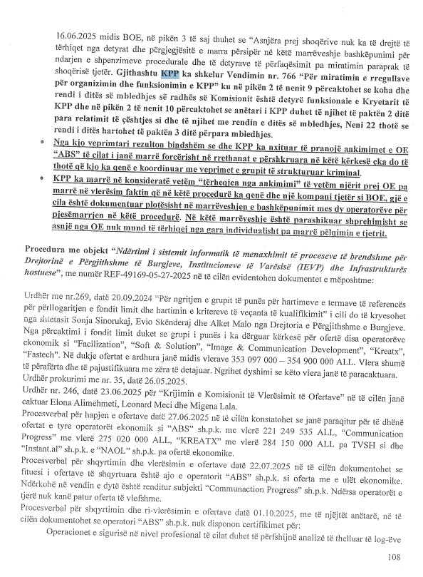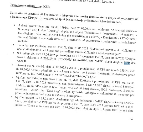 Dosja e SPAK tregon se kërkesa për pezullimin e “njoftimit të tërheqjes” nga kompania ‘ABS’ u refuzua nga KPP, duke lënë të hapur dyshimet për ndërhyrje dhe mbështetje të pengmarrësve brenda institucioneve. Hetimet nxjerrin në pah një skemë të mundshme bashkëpunimi mes biznesmenëve dhe disa anëtarëve të KPP për të manipuluar proceset e tenderave në AKSHI, duke treguar implikimin e drejtpërdrejtë të disa funksionarëve publikë.