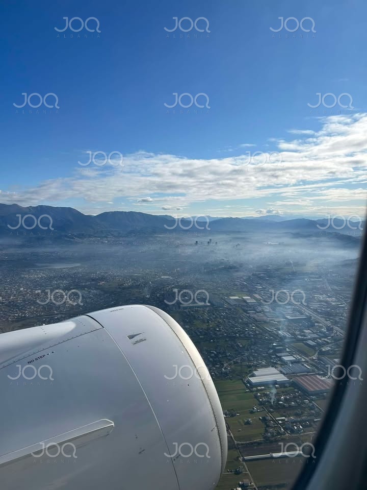 Një qytetar ka dërguar pranë redaksisë sonë një foto shqetësuese të realizuar dje në mëngjes nga dritarja e avionit. Ndërsa lartësia ofron një pamje spektakolare, ajo që bie në sy poshtë reve është një "vello" e dendur hiri që ka mbuluar kryeqytetin.