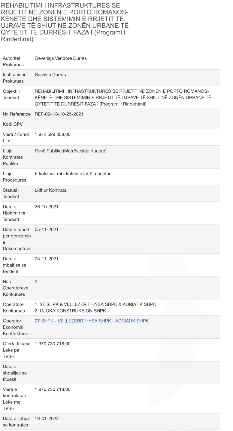 Në këtë mënyrë, tenderi prej 20 MLN € u nda mes njerëzve të një rrethi të mbyllur, një skemë që i ngjan rastit korruptiv 5D në Tiranë, por që në Durrës u pagëzua me emrin "5B".