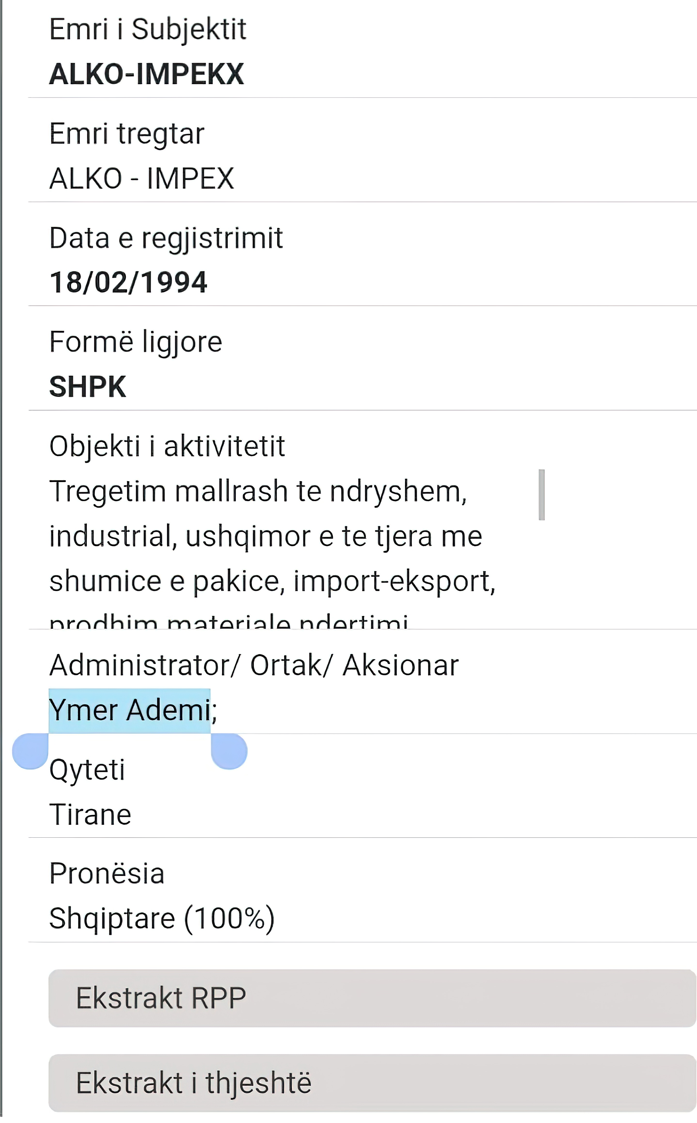 Ky pozicion e shndërron atë në një faktor kyç. Sipas dyshimeve, kjo afëri familjare shërbente si garanci që kompanitë e lidhura me të, si "Alko-Impex", të ishin fituese të paracaktuara. Por roli i tij nuk mbaron te rrugët; ai rezulton të jetë dhe administrator i interesave të përbashkëta me një tjetër emër që vjen nga Kosova, Imer Ademin.