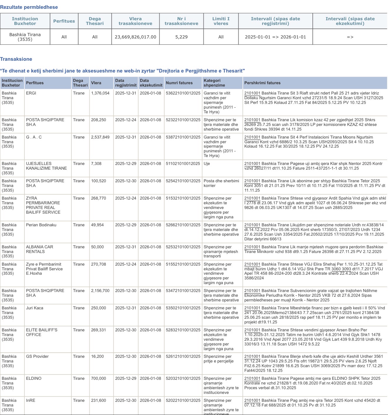 Pas ndërhyrjes së drejtësisë, kjo “makineri pagesash” duket se ka humbur vrullin. Megjithatë, pavarësisht rënies, bilanci i përgjithshëm mbetet tronditës. Nga viti 2025 deri në hyrje të vitit 2026, Bashkia e Tiranës rezulton se ka transferuar mbi 236 MILIARD Lekë drejt kompanive private që ajo ka kontraktuar.