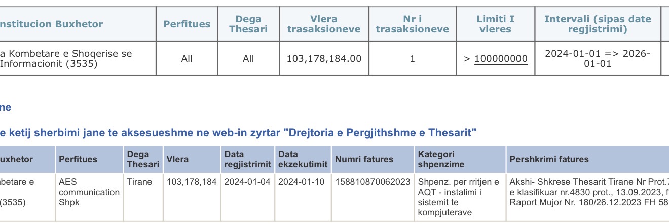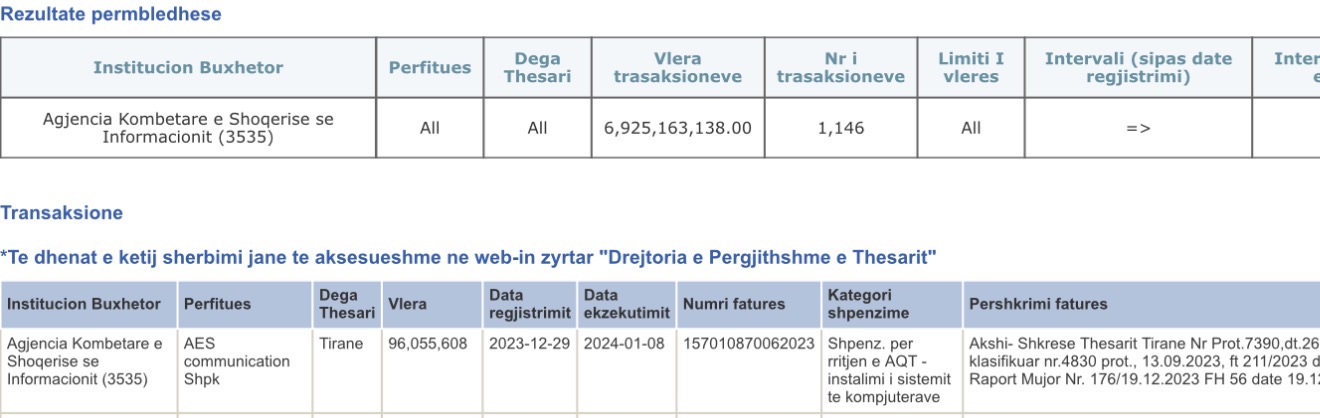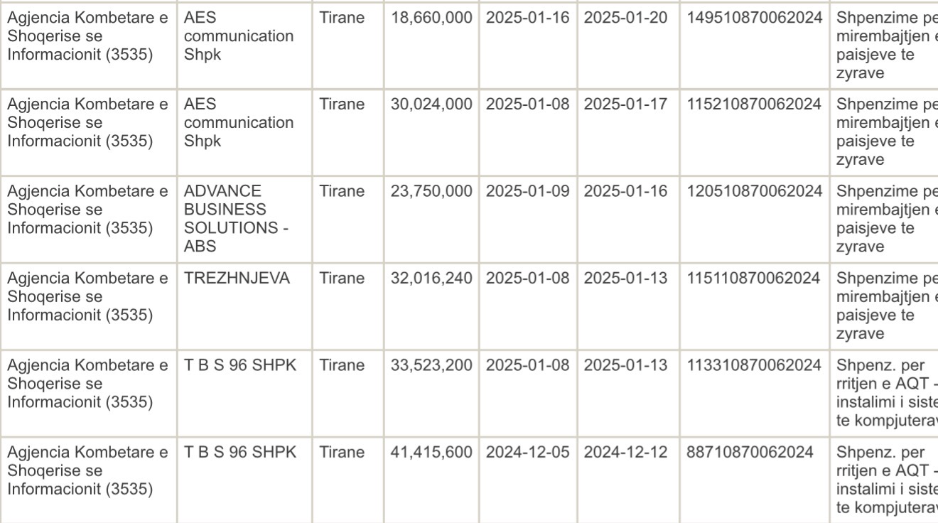Agjencia Kombëtare e Shoqërisë së Informacionit (AKSHI) ka administruar miliarda lekë nga fondet publike ndër vite, ndërsa të dhënat zyrtare të Thesarit tregojnë një panoramë të frikshme të dhënies së parave publike-oligarkëve përmes tenderave të klasifikuar (sekretë) nga drejtoresha e këtij institucioni Mirlinda Karcanaj për vitet 2019-2026!