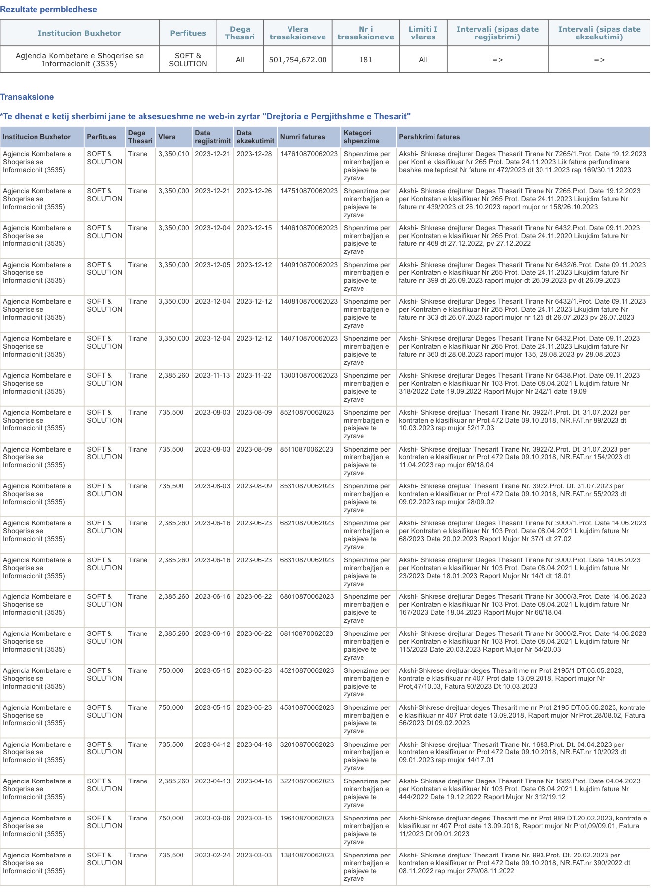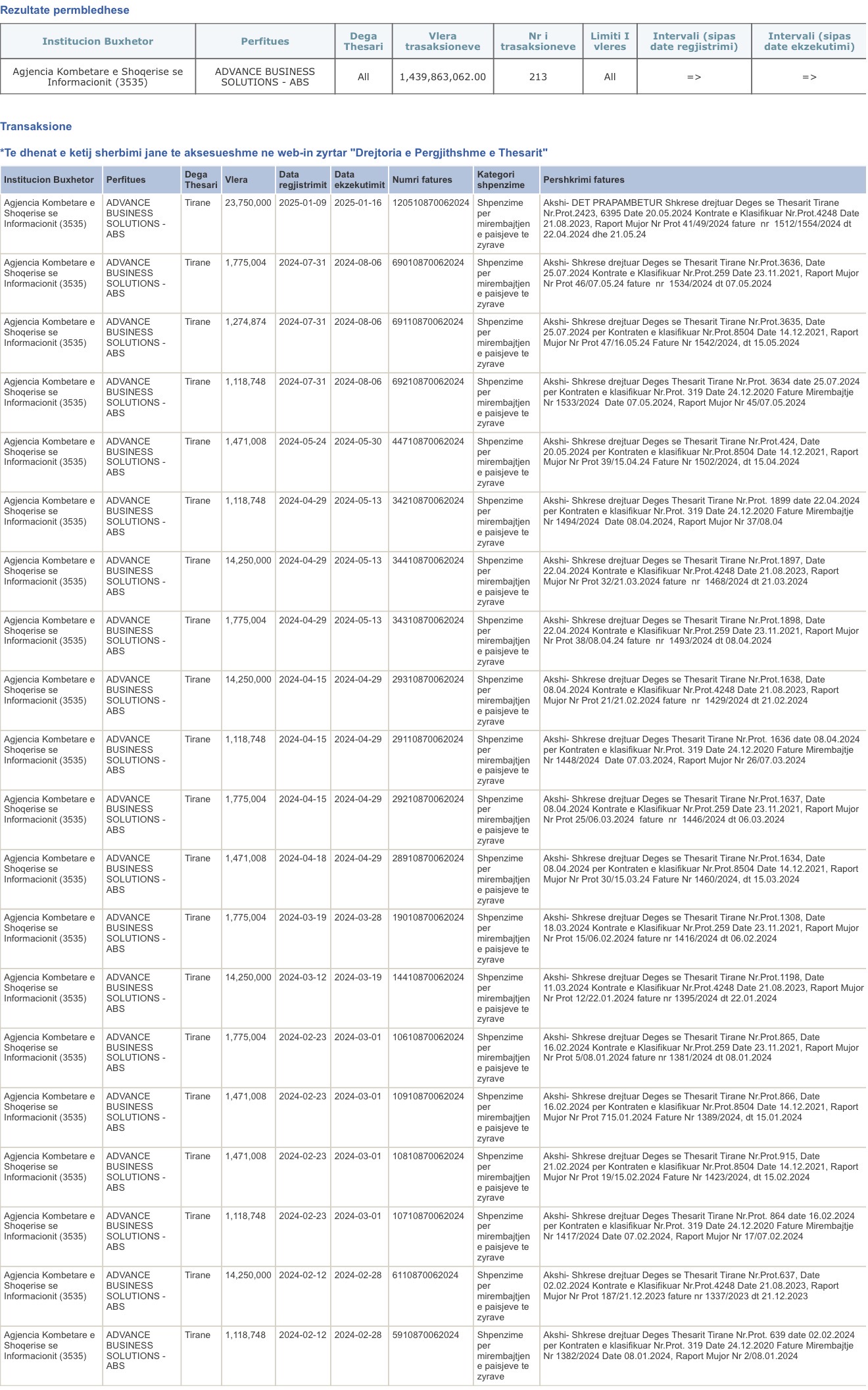 Një vështrim më afatgjatë mbi shpenzimet e AKSHI tregon përmasa edhe më të mëdha financiare. Nga viti 2019 deri në 2026, agjencia ka likujduar përmes Thesarit rreth 414.5 MILIONË € për tendera dhe shpenzime të institucionit për klientët e qeverisë.