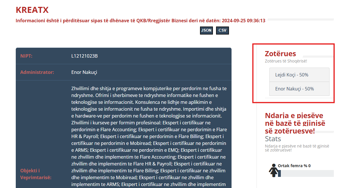 Dyshimet shtohen edhe më tej nga të dhënat e publikuara në media lidhur me pronësinë dhe përfaqësimin e kompanive fituese. Firma “Kreatx” rezulton në dokumente zyrtare në pronësi të Lejdi Koçi dhe Enor Nakuçi, por sipas raportimeve mediatike, pas saj qëndron Panajot Gjiknuri, vëllai i ish-ministrit Damian Gjiknuri.