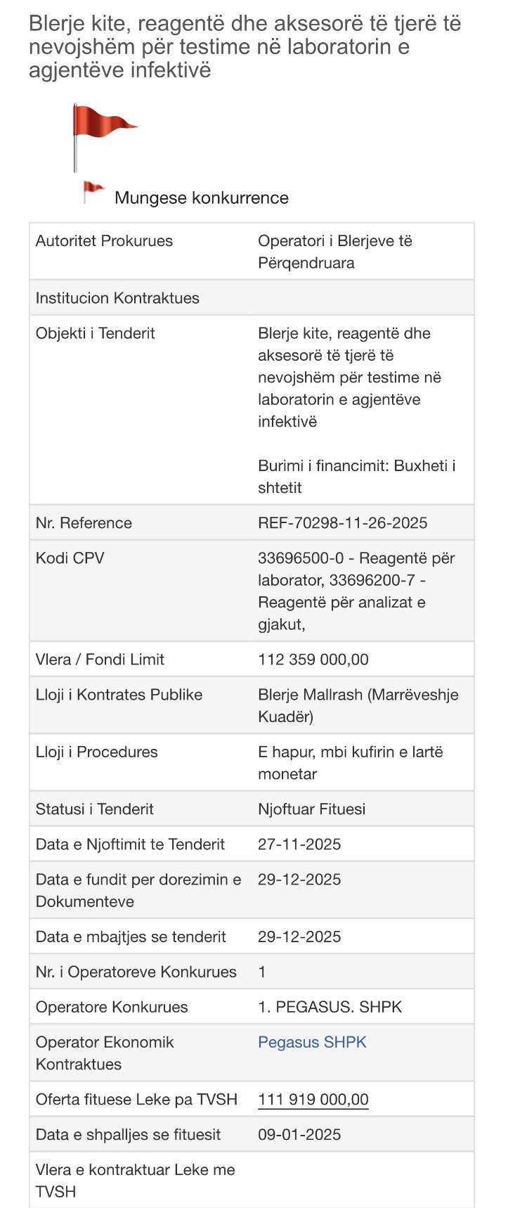 Ky tender është vetëm një pjesë e mozaikut të madh të prokurimeve në shëndetësi, ku emrat e Arlinda Pogajt si zyrtare dhe Janis Karathanos si përfitues, shfaqen gjithnjë e më shpesh në kontrata miliona euroshe që mbajnë vulën e "Mungesës së Konkurrencës".