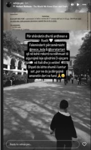 Në mesazhin e saj, Selvija shprehet se Shpati do të ishte shumë i lumtur për këtë arritje dhe se ajo është e vendosur ta çojë deri në fund amanetin e tij.
