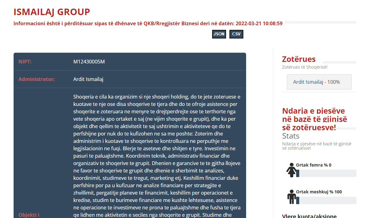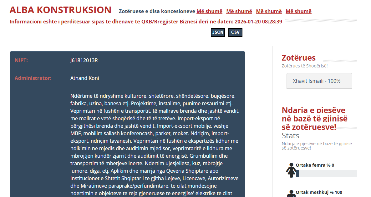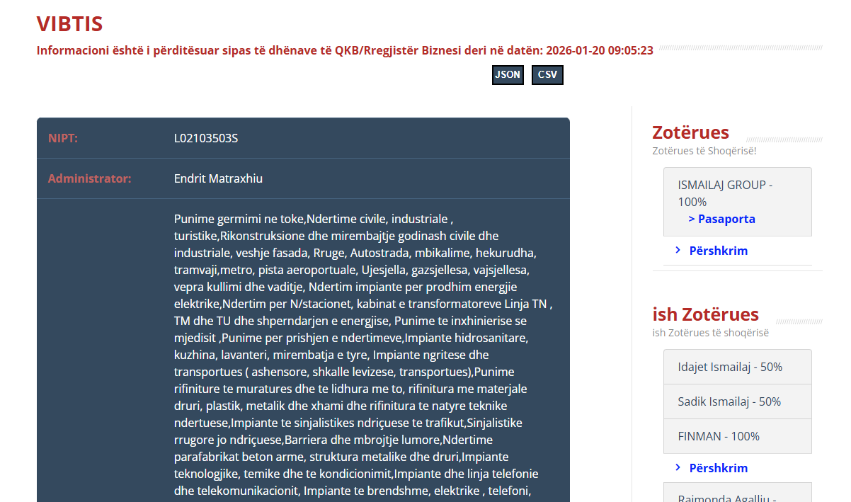 Nga hulumtimi i dokumentacionit të tenderit, rezulton se fitues ka dalë bashkimi i operatorëve "VIBTIS" dhe "ALBA KONSTRUKSION". Kompania e parë, "Vibtis", zotërohet nga nipi i vëllezërve Idajet dhe Sadik Ismailaj, emra të njohur në botën e biznesit që shpesh etiketohen si pjesë e rrethit të oligarkëve që përfitojnë kontrata të majme nga shteti. Ndërsa kompania tjetër, "Alba Konstruksion", është në pronësi të Xhavit Ismaili, duke plotësuar kështu dyshen që do të menaxhojë fondin e madh prej rreth 1.9 milionë eurosh me TVSH.