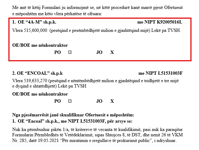 Fakti që oferta fituese prej 515,600,000 lekësh të reja pa TVSH kap plot 98.16% të fondit limit, vërteton se nuk ka pasur asnjë lloj gare reale. Në një prokurim ku fituesi ofron pothuajse të njëjtën vlerë me tavanin maksimal të lejuar, kursimi për xhepat e qytetarëve është zero. Kjo "gosti" mes sekserësh dhe drejtuesish shtetërorë konfirmon edhe njëherë se si institucionet në varësi të Ballukut po i shpërndajnë fondet publike si të ishin dhurata personale për klientët e tyre besnikë.