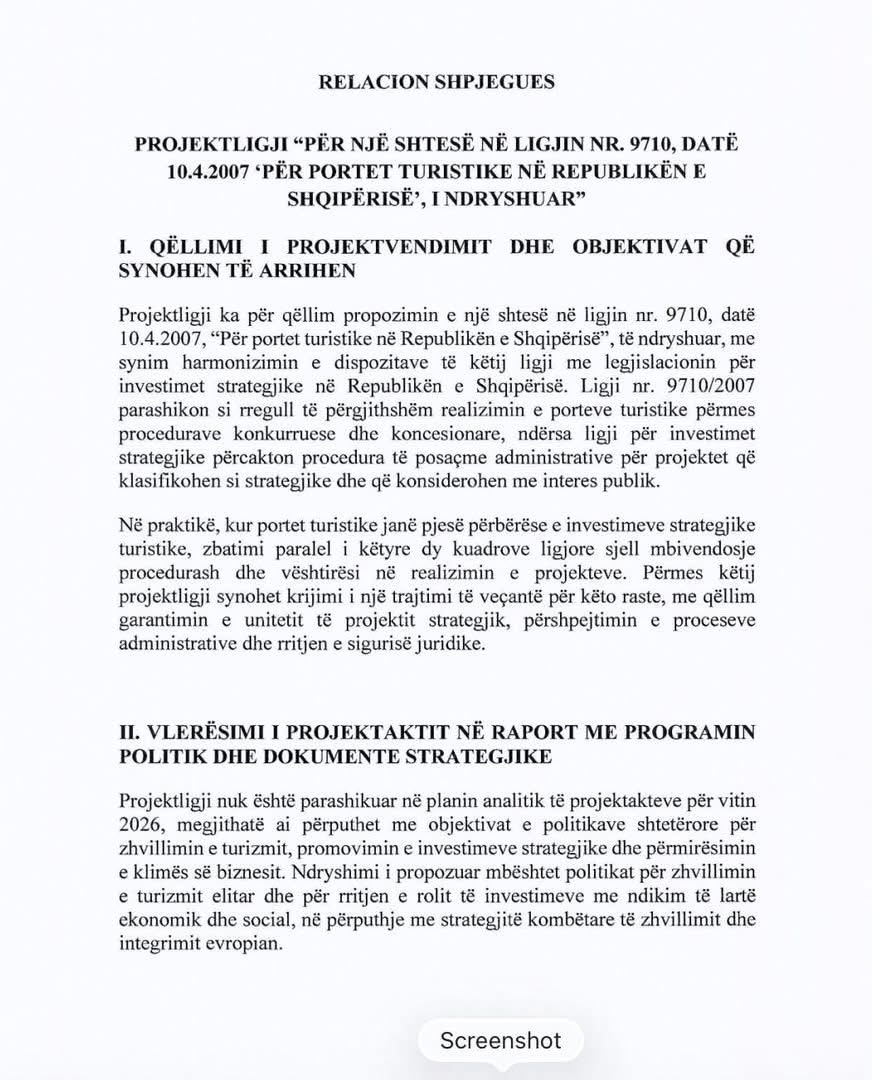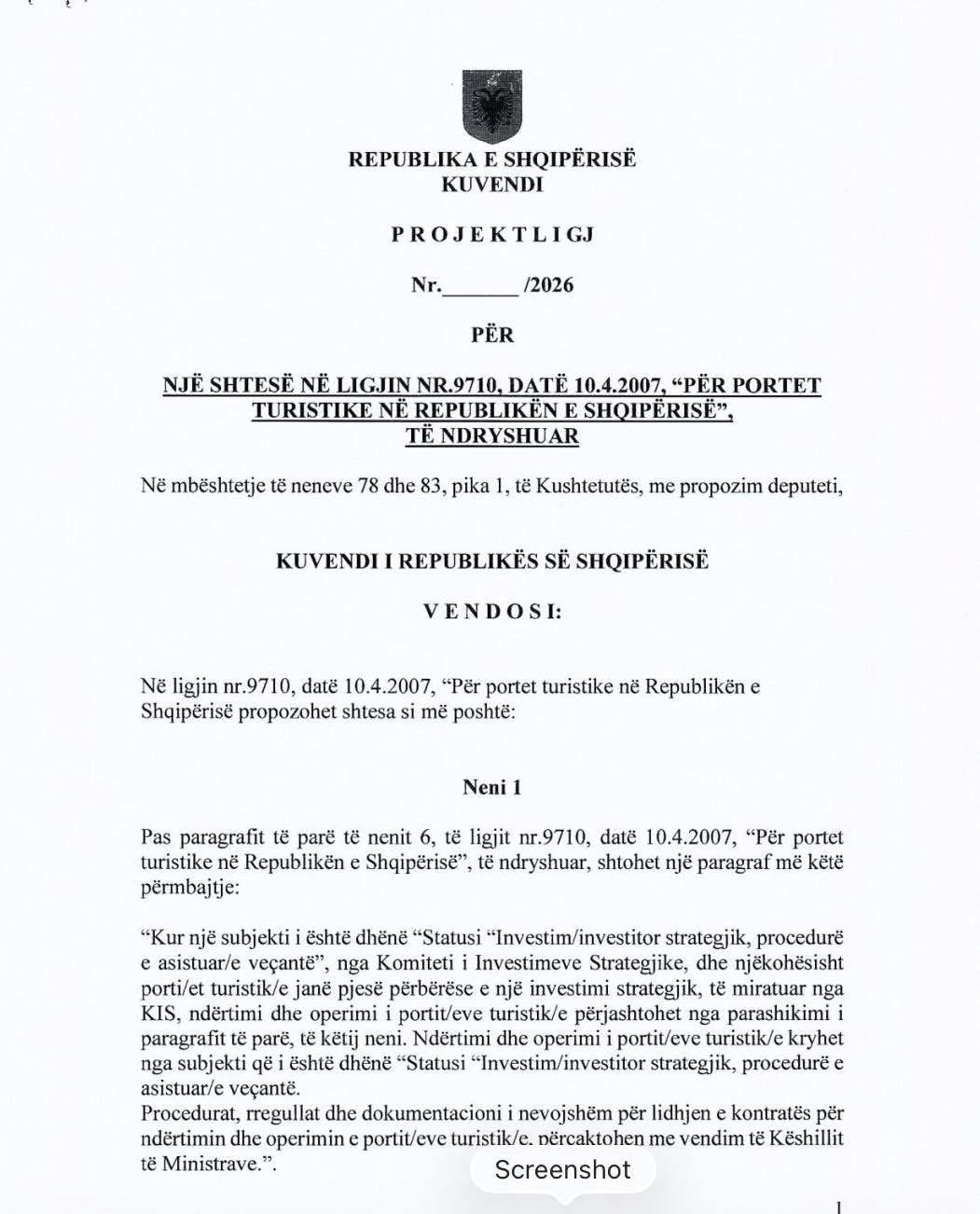 Nisma, e paraqitur nga përfaqësuesja e qarkut të Vlorës, synon t’u japë më shumë lehtësira oligarkëve të maskuar si investitorë strategjikë për ndërtimin dhe administrimin e porteve në zonat ku janë ngritur apo planifikohen fshatra turistikë pa procedura konkurrimi.