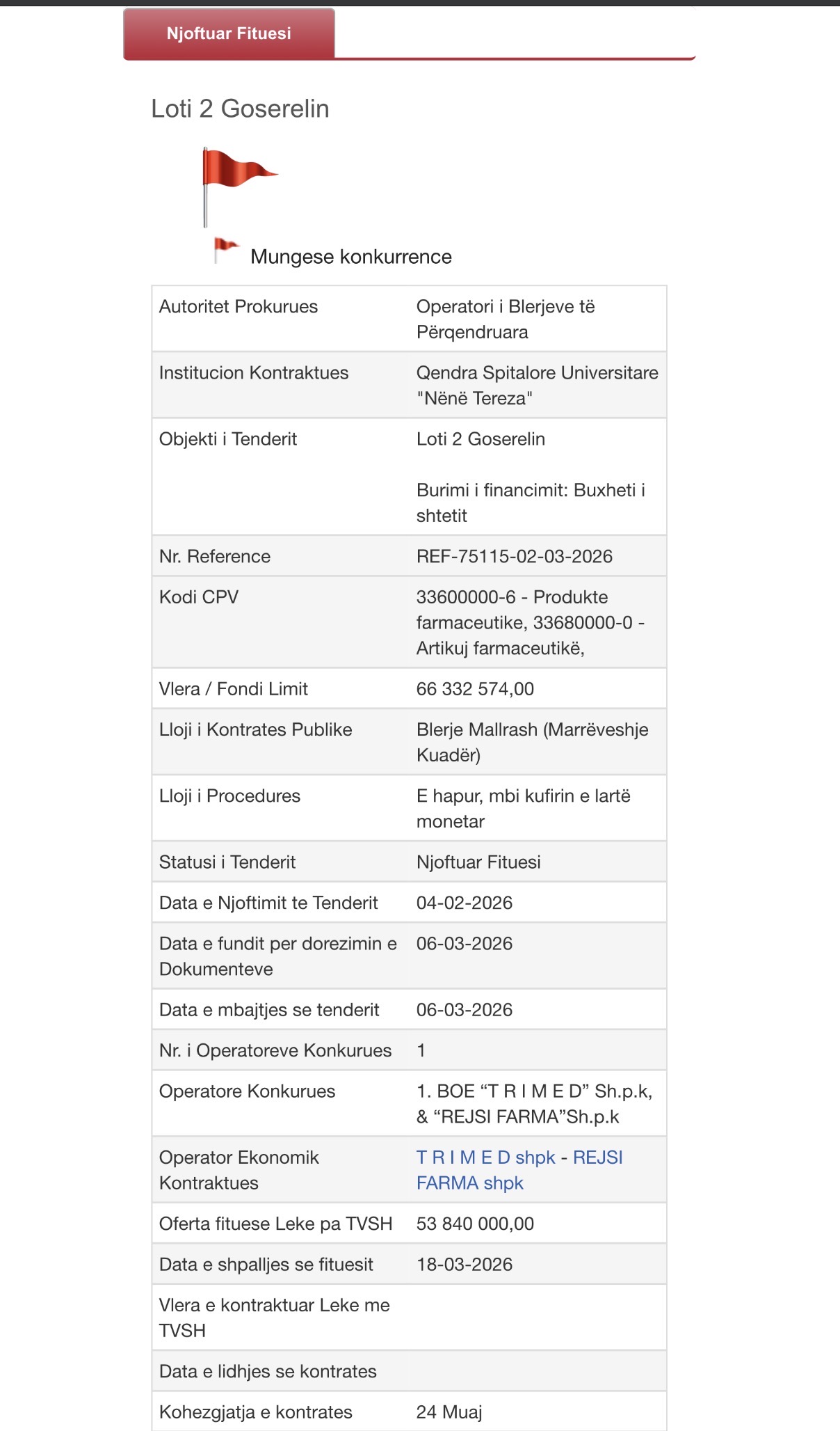 Arlinda Pogaj, "bukuroshja" e Operatorit të Blerjeve të Përqendruara, pasi ia hoqi riskun e 355 MILIONË LEKËVE Vilma Nushit në tenderin e fundit të denoncuar nga JOQ për t'ia dhënë deputetit të PS-së, Vasil Llajos, tashmë i ka kthyer reston duke i dhënë mbi gjysmë miliardë lekë me TVSH Nushit dhe oligarkes kolege në shëndetësi, Merita Sheqit.