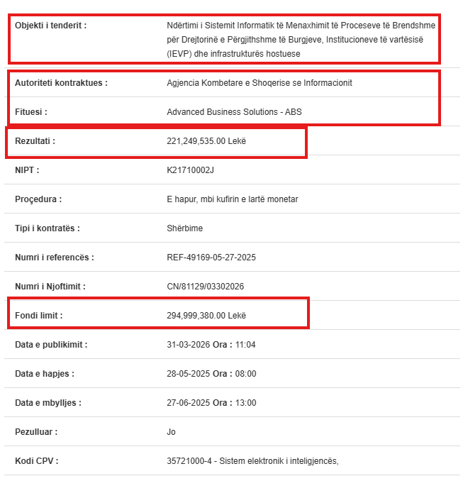 Këtë herë, "bamirësi" është Agjencia Kombëtare e Shoqërisë së Informacionit (AKSHI), nën drejtimin e Igli Tafës, e cila i ka dhuruar Meçes një kontratë të majme me vlerë rreth 2.7 milionë euro me TVSH.