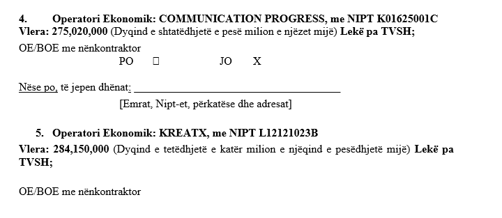 Oferta Fituese: 221,249,535.00 Lekë pa TVSH