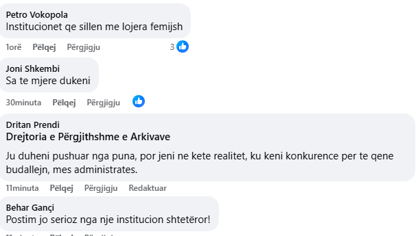 Reagimet nuk munguan, me komente që vinin në pikëpyetje seriozitetin e institucionit. Një qytetar shkruan: