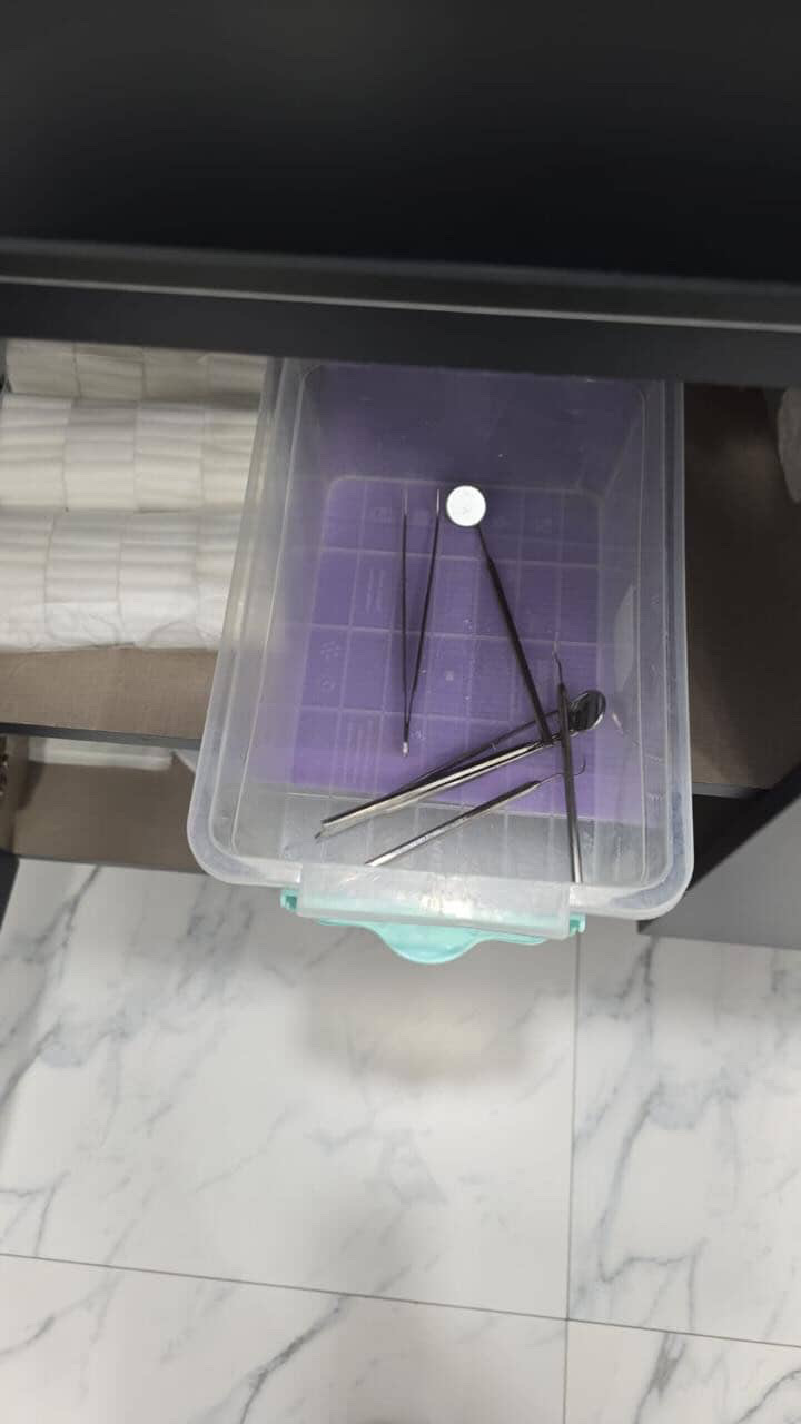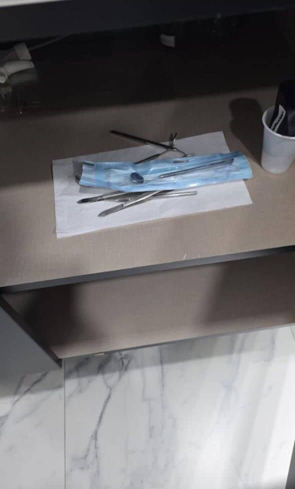 instrumenta te protetikes te pa sterilizuar dhe me gjak perdoren per cdo pacient, pa kushte optimale per mbrojtje nga semundjet infektive. Sa her ka lajmeruar kontrolli stafi i pa kualifikuar ka dal nga klinika dhe esht thirrur diten tjeter per pune.