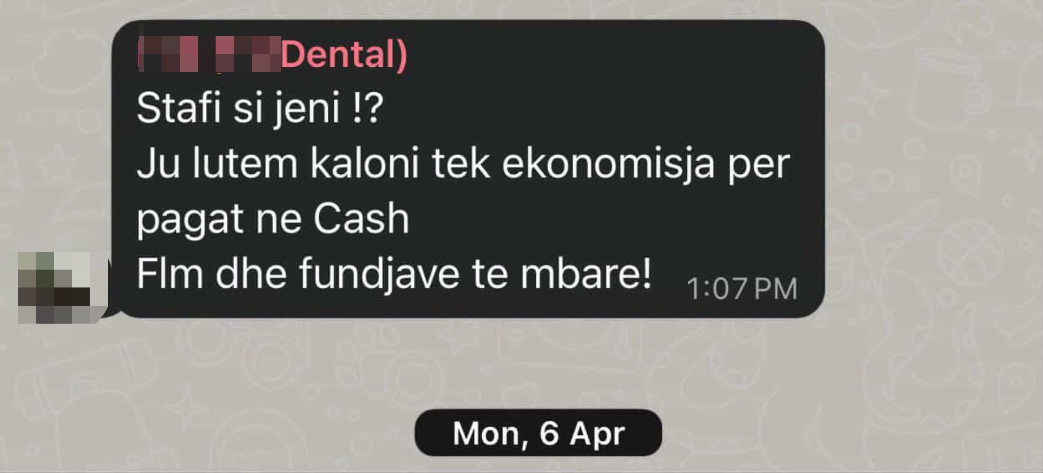 Një ish-punonjëse e një klinike dentare në Tiranë ka bërë një denoncim në redaksinë tonë, duke ngritur një sërë akuzash për shkelje të ligjit të punës dhe standardeve shëndetësore në vendin e punës.