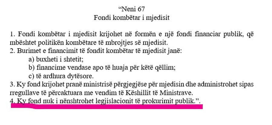 Ky fond, i cili do të ushqehet direkt nga buxheti i shtetit dhe financime të huaja, prezantohet si një mekanizëm mbështetës për politikat ekologjike, por fsheh në brendësi një klauzolë që praktikisht pezullon rregullat e shtetit ligjor mbi kontrollin e shpenzimeve.