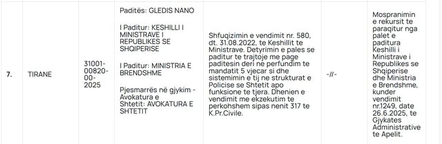 Gjykata e Lartë i ka dhënë fund betejës së gjatë ligjore të ish-drejtorit të përgjithshëm të Policisë së Shtetit, Gledis Nano, kundër Këshillit të Ministrave dhe Ministrisë së Punëve të Brendshme.