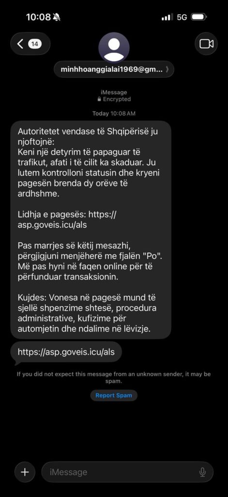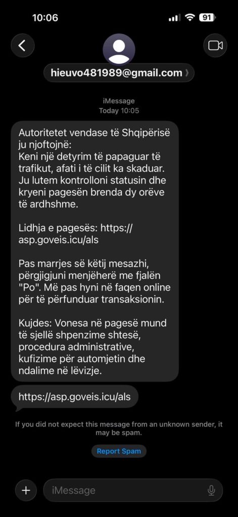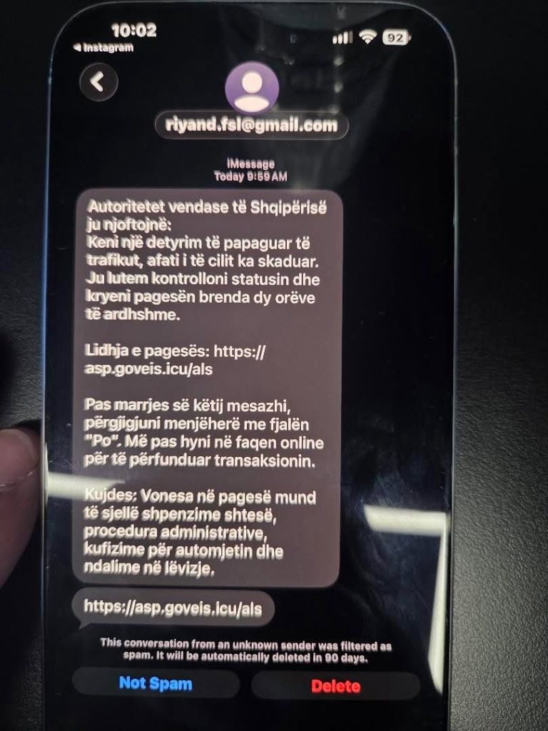 Dy raste të dyshuara mashtrimi janë denoncuar nga qytetarë, të cilët paralajmërojnë për mesazhe të rreme që qarkullojnë në telefon. Në rastin e parë, një mesazh i dërguar nga një adresë e panjohur pretendon se vjen nga “autoritetet vendase”, duke njoftuar për një gjobë trafiku të papaguar dhe duke kërkuar pagesë të menjëhershme përmes një linku të dyshimtë. Qytetari thekson se forma e komunikimit dhe adresa e dërguesit ngrenë dyshime të forta për mashtrim.