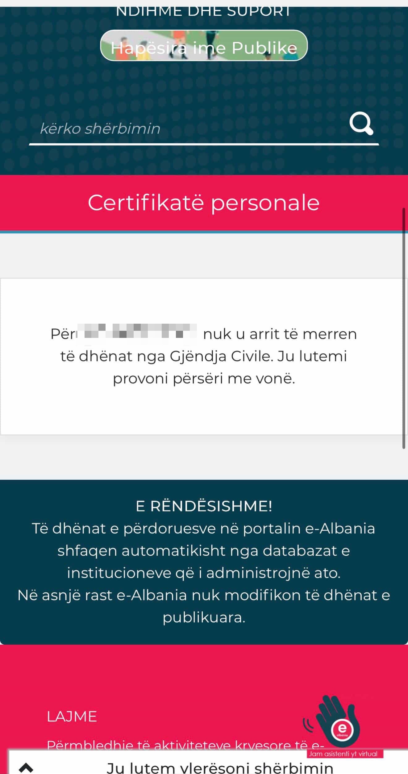 Sipas një qytetari që i është drejtuar redaksisë tonë, ky shërbim nuk funksionon që prej ditës së shtunë, duke krijuar pengesa të konsiderueshme për përdoruesit.