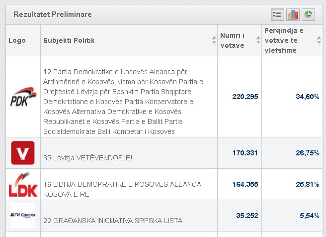 Me 91% të votave të numëruara, surpriza është Vetëvendosja e cila ka forcuar pozicionin e saj të dytë duke arritur në 26.75% të votave në total. Kjo parti ka rreth 4 mijë vota më shumë se koalicioni LDK-AKR-Alternativa që mbetet me 25.81% të votave.