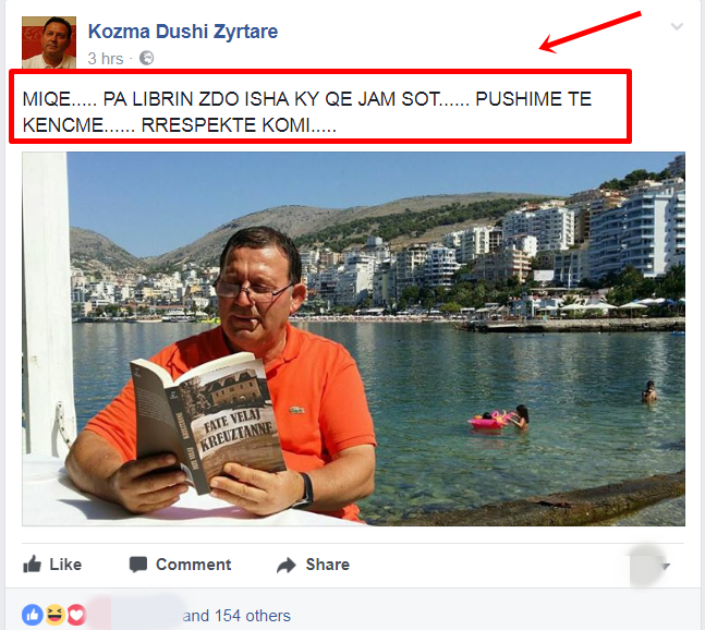 Një prej fotove të tij e ka shpërndarë në rrjetet sociale me miqtë dhe fansat, ndërsa sipër ka bërë edhe një përshkrim të shkurtër, por që ka marrë komente të shumta negative në lidhje me mënyrën se si ka shkruar.