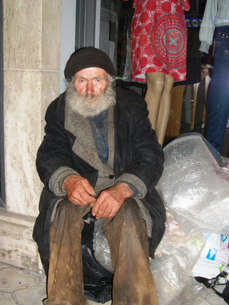 I zhytur në mjerimin e tij, fjalëpakë, i edukuar, por edhe i përgatitur që të japë çdo përgjigje, falë kjo edhe leximit të përditshëm të gazetave. Por sipas tij, gazetat dhe politika sot janë krejt ndryshe nga e kaluara. Kursimet e jetës së tij ky njeri i ka humbur si shumica e shqiptarëve në çmendurinë e piramidave, ndërsa për shkak të të qenit i vetmuar dhe jashtë vëmendjes së shoqërisë, ai nuk ka mundur dot as të përfitojë nga ndihmat sociale apo banesat për të pastrehët në bashkinë e Elbasanit.