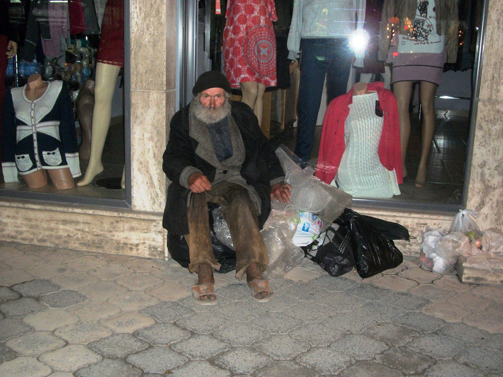 Gjatë ditës e sheh nëpër rrugë, spitale apo institucione të ndryshme. Në mbrëmje ai gjen ndonjë strehë pallati apo lulishte ndërsa të vetmet shtroje për të janë rrobat e falura dhe gazetat që nuk ka mundur t’i shesë. Mbulojë ka qiellin e hapur ndërsa ndriçimi është vetëm ai që vjen nga dritat e rrugës ndërsa fqinjë janë kalimtarët e rastësishëm në rrugë.