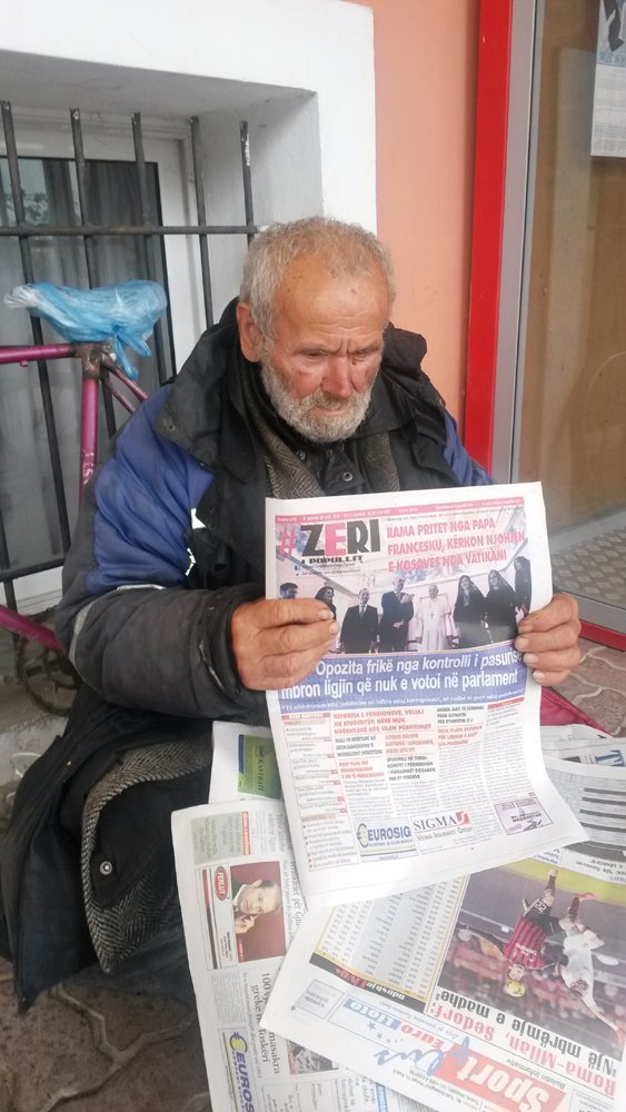 Ai çdo ditë vërtitet nëpër rrugët e qytetit prej më shumë se 50-të vitesh me një grumbull gazetash në dorë, ku janë i vetmi burim financiar që ai ushqehet. Jeta e tij është e mbushur plot sprova, vuajtje e dhimbje të mëdha, pa patur qoftë një mbështetje apo dhe një ambient të ngrohtë për të futur kokën.