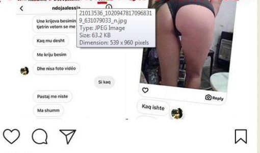 Faqja në Instagram, Demaskime shqiptare, ka publikuar disa mesazhe të shkëmbyera ndërmjet modeles Alesia Ndoja me një djalë, i cili i kërkonte foto nudo.