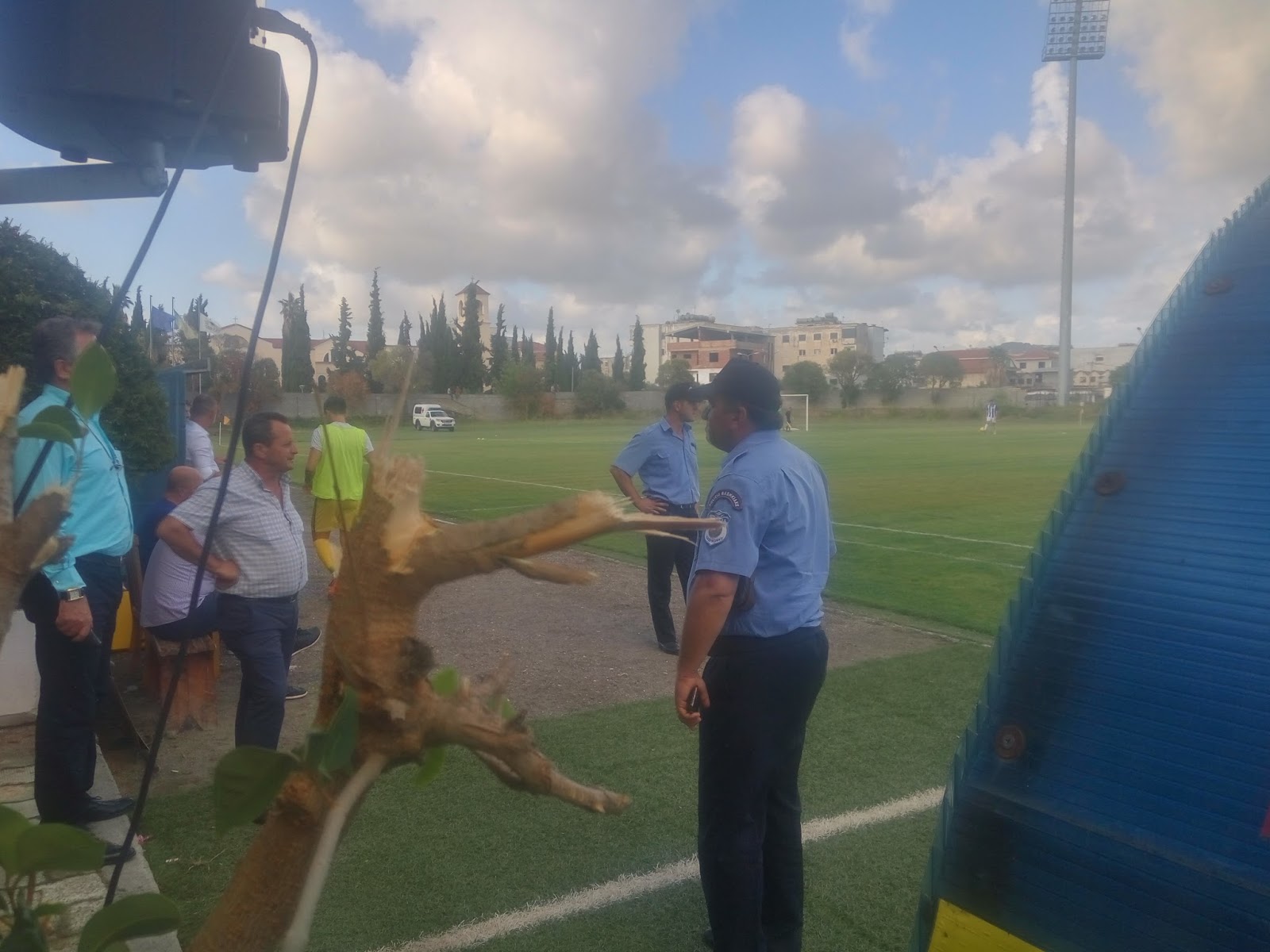 Më pas, në stadium ka ardhur Policia Bashkiake dhe një polici private, kështu që nga delegati i FSHF-së, Petrit Haxhia, është dhënë miratimi që ndeshja të zhvillohet.