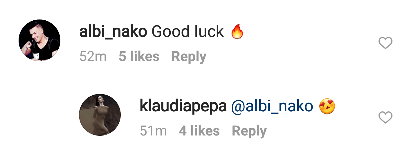Kështu ka ndodhur edhe me postimin e fundit të Klaudias, ku ka bërë publike videon e parë të ciklit prej njëmbëdhjetë klipesh që e ka paralajmëruar edhe më parë, e mes komenteve të shumta shihet edhe ai i ish-bashkëshortit të saj.