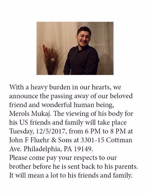 Merols Mukaj është 21-vjeçari shqiptar i cili u qëllua me 3 plumba në Filadelfia nga një 24-vjeçar me precedentë të mëparshëm penalë.