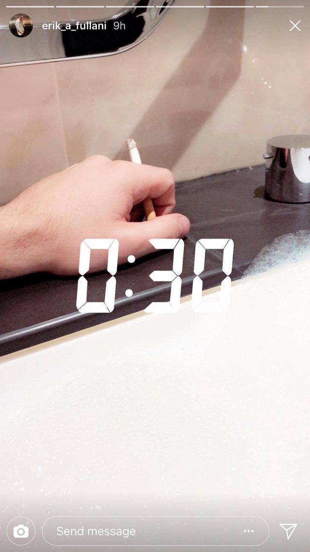 Eriku me të dashurën e tij fillimisht kanë darkuar, më pas ka treguar surprizën që ajo i kishte përgatitur në dhomën e gjumit, për ta mbyllur me momentet romantike në vaskë, nga ku Eriku është treguar më i rezervuar me detajet e fotos.