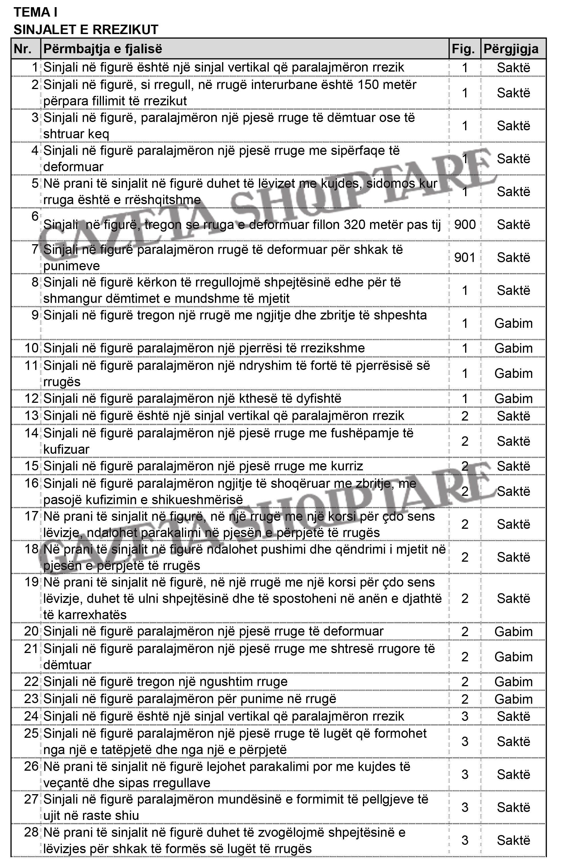 Pikët e patentës Duke filluar nga data 16 prill 2015 të gjithë mbajtësit e lejedrejtimit kanë një total prej 20 pikësh. Çdo lejedrejtimi e lëshuar për herë të parë pas kësaj date, ka një total prej 20 pikësh, që regjistrohet në datën e lëshimit të lejedrejtimit. Në rast se mbajtësi i lejedrejtimit, brenda 2 vitesh nuk bën ndonjë nga shkeljet për të cilat është parashikuar zbritje pikësh, atëherë sasia e pikëve rritet me 2 pikë, për çdo 2 vjet, deri në një maksimum prej 30 pikësh. Në rast se sasia e pikëve është më pak se 20, dhe mbajtësi i lejedrejtimit nuk kryen ndonjë nga shkeljet, për të cilat është parashikuar zbritje pikësh, për 2 vjet, atëherë sasia e pikëve bëhet 20. Komunikimi i të dhënave, për zbritjen e pikëve dhe heqjes së lejedrejtimit, ndërmjet organeve të policisë dhe DPSHTRR, kryhet në mënyrë telematike (elektronike) dhe me anë të shkresave zyrtare. Kur sasia e pikëve zerohet, ose kur brenda vitit bëhen 3 shkelje, secila me të paktën 5 pikë, atëherë qytetari do t’i nënshtrohet provimit të kualifikimit teorik. Rifitimi i pikëve, me anë të provimit të kualifikimit teorik, është i vlefshëm pas përfundimit të afatit të pezullimit të lejedrejtimit.