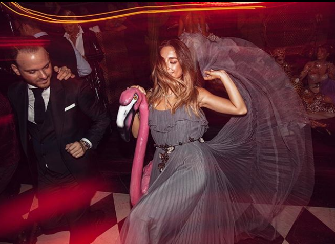 Në postimin e fundit, vajza dukej e rrethuar nga miqtë, teksa festonin në hotelin luksoz "One and Only Royal Mirage".
