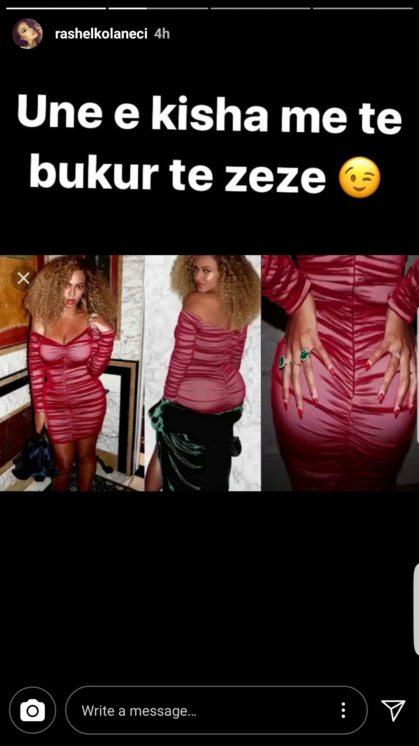 Modelja më pas ka postuar një foto të të pasmeve duke e quajtur veten Beyonce shqiptare.